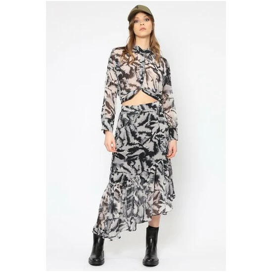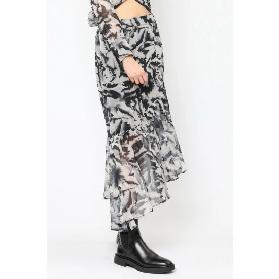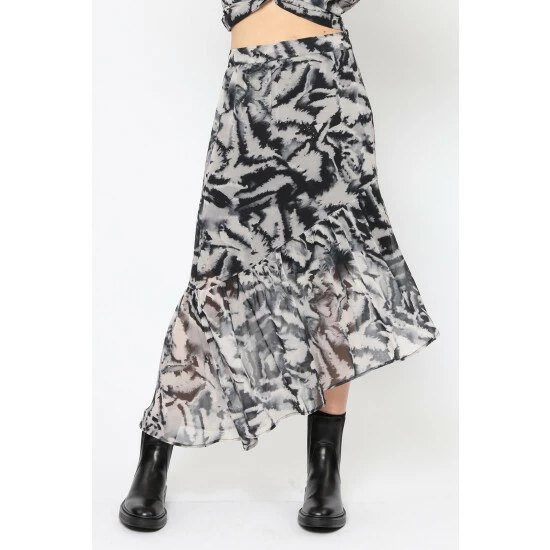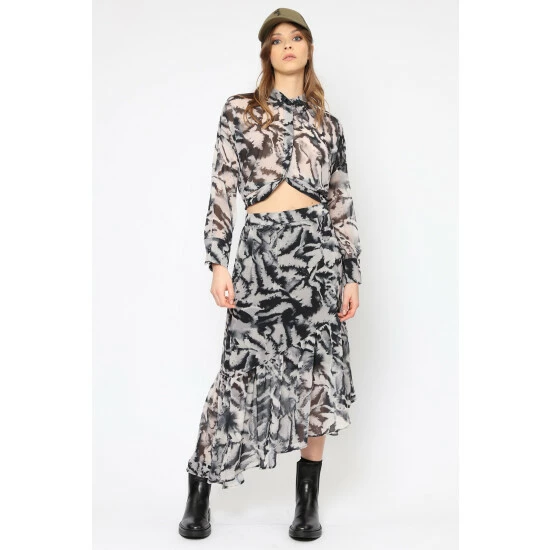 The Dazzle midi skirt available in our hand painted fierce animal prints, will make a striking addition to any wardrobe. This midi styles features an elasticated waistband at the back for ease and comfort and a flat fronted waistband, it is lined in soft viscose. Wear yours with a sweat and ankle boots for an easy everyday look or with the matching shirt for a great co-ord. This style is made with 50% recycled georgette fabric made from plastic bottles. This style has a regular fit, the model wears a size 10.