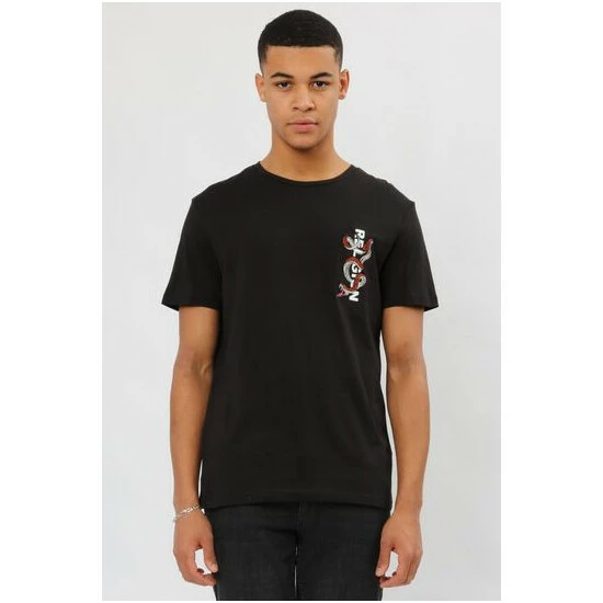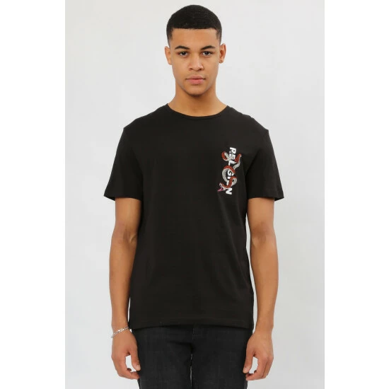 Shaped toa regular fit the Rel Snake T-shirt is rafted in a soft black cotton jersey, with snake graphic on the left chest.