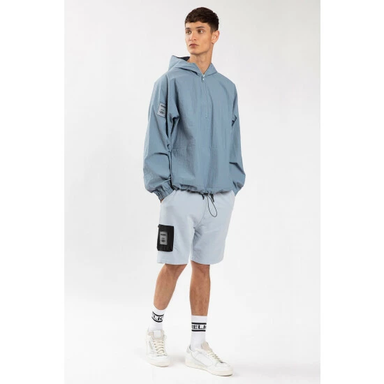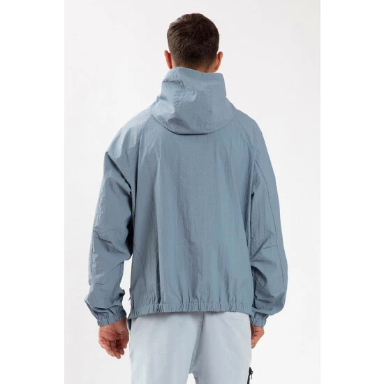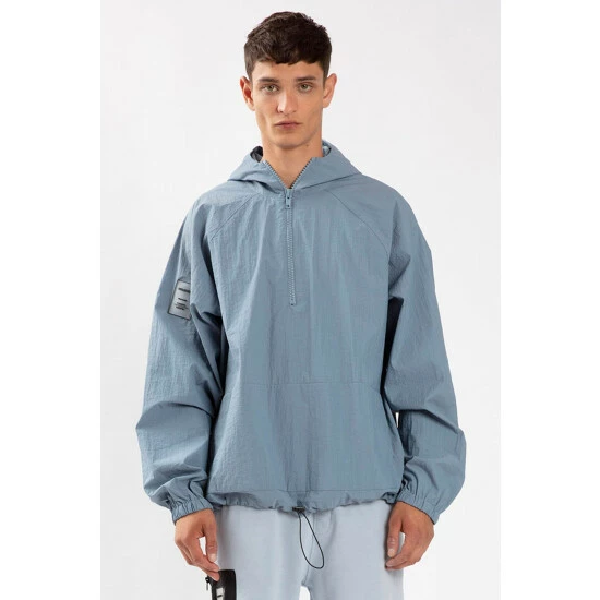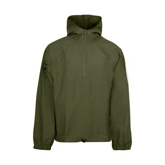 The Para Hoodie is shaped to an over-sized fit in olive green. Made from a durable taslon with half zip closure and side zip details. Featuring pouch pocket and frosted patch detail on the arm.