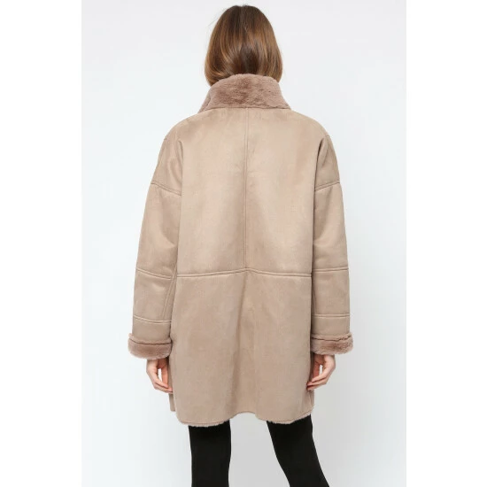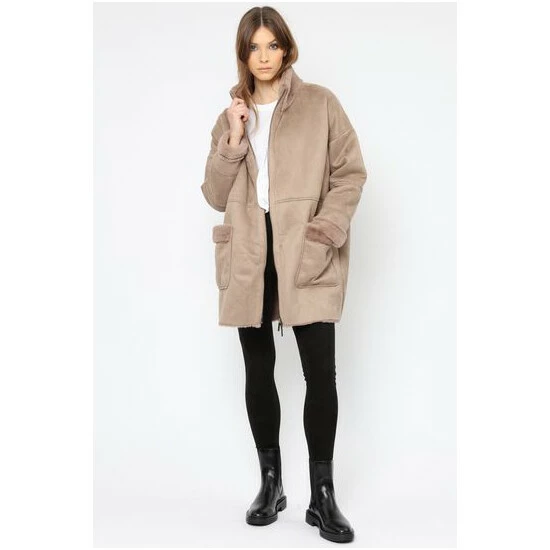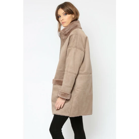 Religion Brown Faux Sheepskin Radiant Zip Coat With Patch Pockets