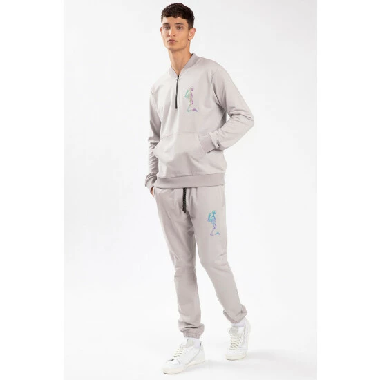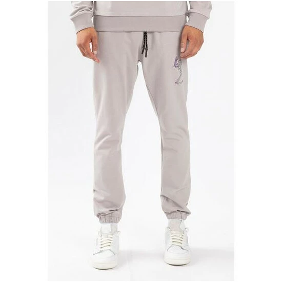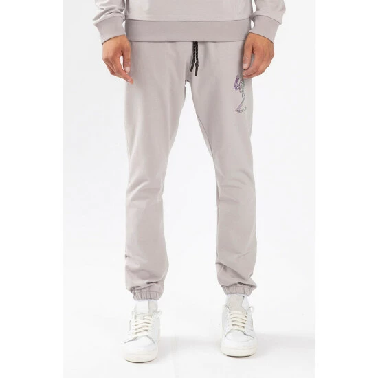 Lounge about. The Lit Sweat Pant. Crafted from a soft loop back sweat in opal grey. Shaped to a relaxed fit with elasticated waistband and gathered trouser hem for easy everyday wear. Featuring iridescent praying skeleton detail on the leg.