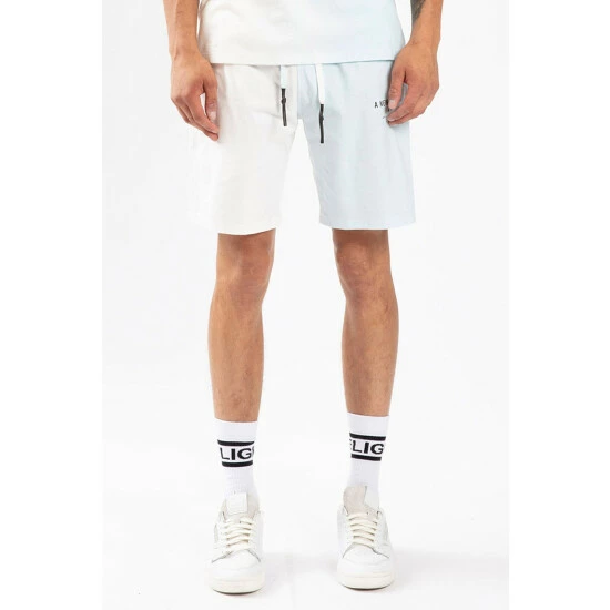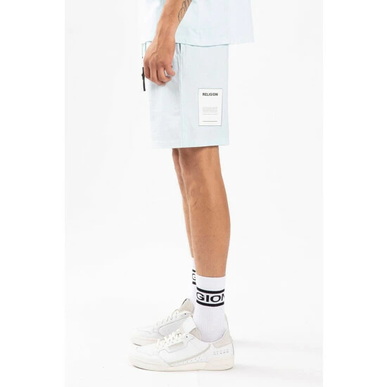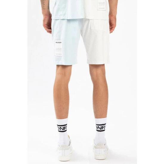 A new world. Shaped to a relaxed fit in soft cotton with elasticated drawstring waist. The Fade Shorts feature a subtle colour fade from off-white to blue, with printed Religion branding on the front and patch detail at the back.